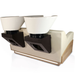 The unit also includes mood-enhancing LED lighting and two ceramic basins, complete with taps.